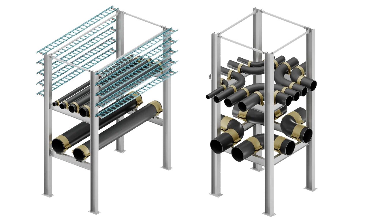 Непроходная совмещенная эстакада для прокладки кабеленесущих систем (КНС) и технологических трубопроводов